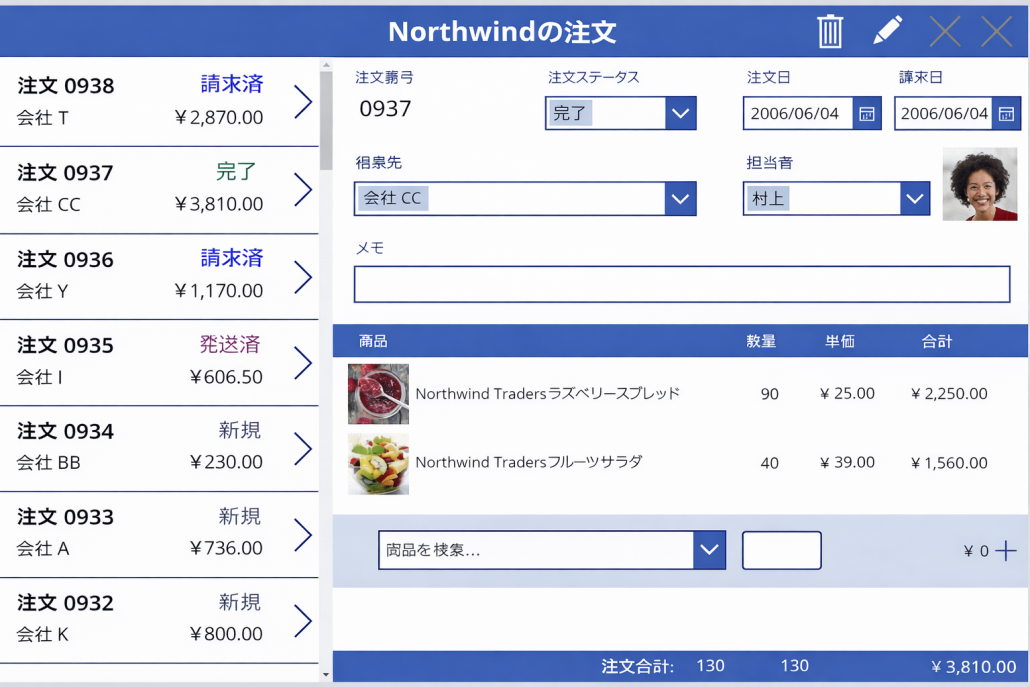 モデル駆動型アプリとキャンバスアプリでは、同じデータベースを共有したアプリの開発が可能ですので、管理者や事務担当者向けにはモデル駆動型アプリの画面を、現場や外出先の担当者向けにはキャンバスアプリを開発して提供するといった使い方が可能です。